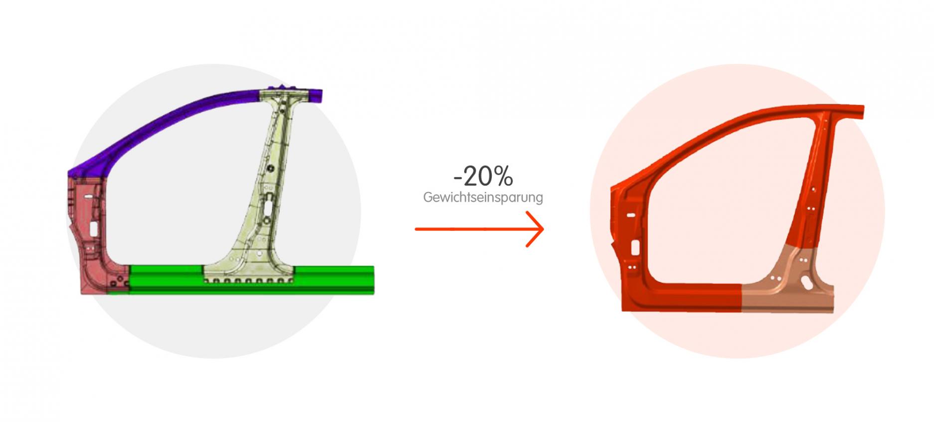 By optimizing the thickness of each blank, the weight of a component can be reduced significantly